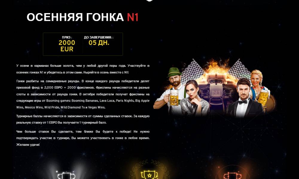 Программа лояльности в казино N1 называется Road to Glory и предлагает игрокам различные бонусы и привилегии за активную игровую деятельность. Участники могут зарабатывать комп-пойнты и продвигаться по уровням, получая все больше вознаграждений.