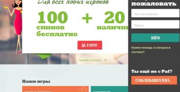 Прежде всего, радует, что портал Paf полностью переведен на грамотный русский язык. Здесь предлагаются неплохие игры (включая покер, интеллектуальные игры и многое другое), проводятся турниры. Также клиенты заведения могут тешить себя мыслью, что проигранные ними деньги идут на благотворительность.