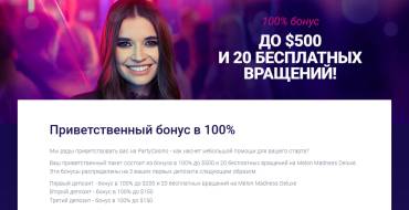 Бренд Partycasino знаком большинству постоянных читателей этого сайта. Заведение работает много лет, неизменно радуя клиентов сервисом высочайшего качества. Оно предлагает игрокам большой выбор моделей, щедрые бонусы, интересные акции, огромные джекпоты, внушительный кэшбек и другие возможности.
