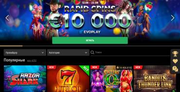 В лобби игровые автоматы можно сортировать по провайдеру и другим категориям. Новинки традиционно вынесены в отдельный подраздел. Доступны слоты с накопительными джекпотами.