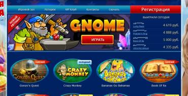 Заведение предлагает всем хорошо известные слоты Igrosoft и Novomatic (Gaminator). Вы сможете играть прямо на сайте или же воспользоваться скачиваемой версией, которая, по утверждению администрации, является более быстрой.