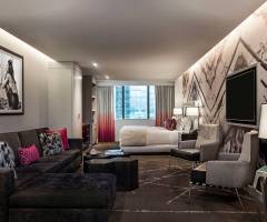 - Wraparound Terrace: Апартаменты с панорамным видом на Лас-Вегас могут похвастаться удобствами, которые обычно не встречаются в роскошных номерах: стильным баром и охладителем вина Sub-Zero.