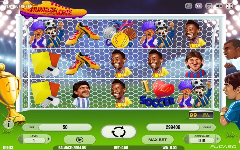 В игровом автомате «Номер один» Fugaso на барабанах появляются легенды мирового футбола. Пеле, Марадона, Роналду и Месси изображены в стиле добрых карикатур, вызывающих улыбку. Они составляют комбинации, а также запускают повторные респины, оставаясь на своих местах. Кроме того, в Number One есть серии бесплатных вращений с удвоенными коэффициентами и дополнительными джокерами.