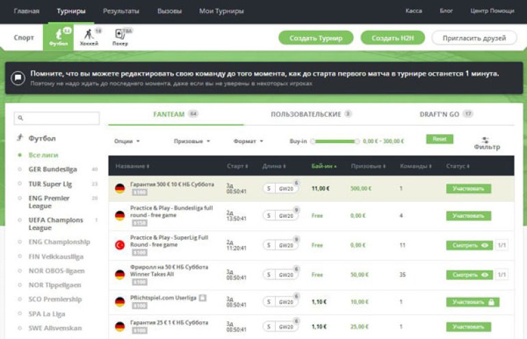 Какие бывают турниры по фэнтези спорту?