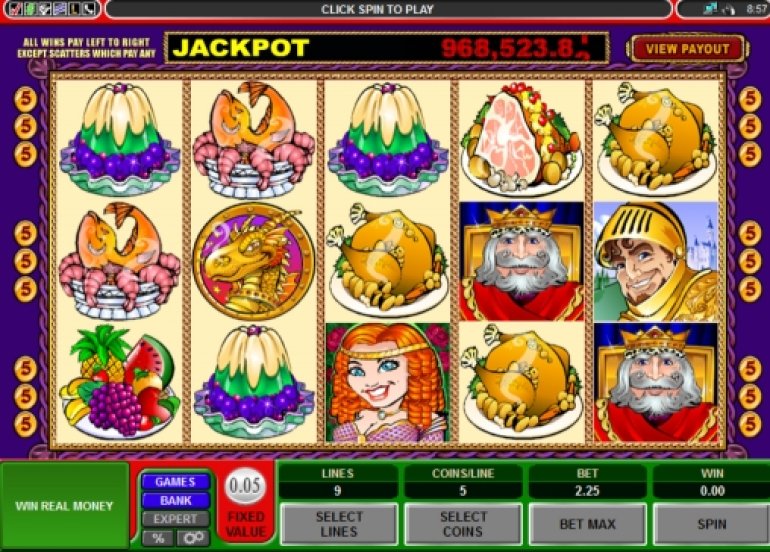 Средневековые рыцари и дамы на пяти барабанах, девять активных линий, монеты фиксированного номинала пять центов, тридцать две выигрышных комбинации, особые символы и солидный джекпот, который может выиграть каждый пользователь.