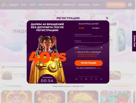Спешите воспользоваться эксклюзивным предложением казино AllRight, распространяющимся на новых игроков. Если у вас нет и никогда не было аккаунта в данном заведении, вы можете получить специальный подарок в виде фриспинов на знаменитом слоте.