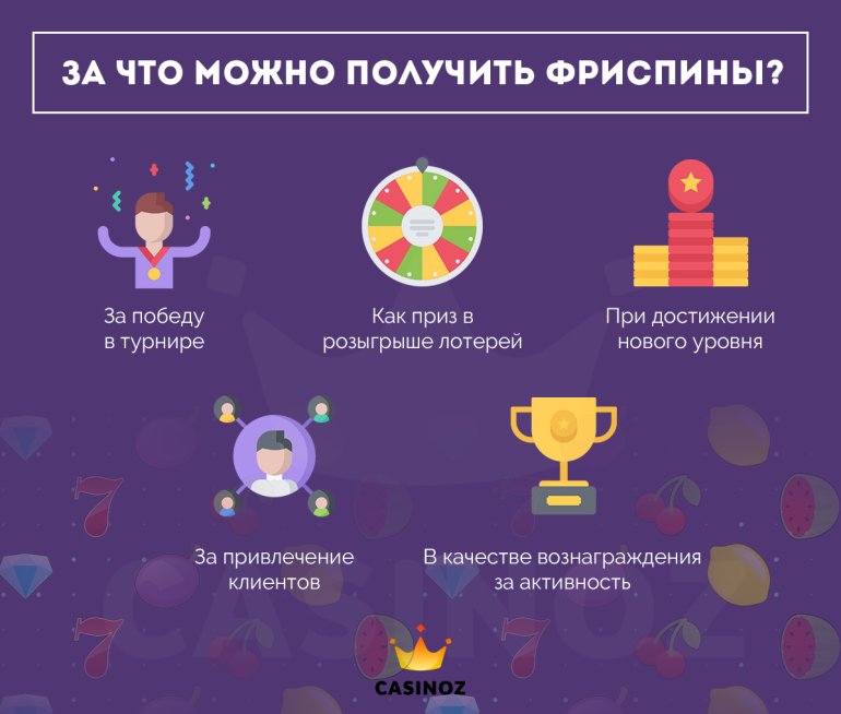 Фриспины (англ. Free spins – бесплатные спины) – это игровые раунды на слотах, которые проходят на деньги заведения, но выплаты перечисляются на баланс клиента.
