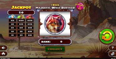 В Majestic Wild Buffalo slot всего один барабан, на котором разыгрывается один из пяти символов. Три знака приносят денежные призы, которые постепенно накапливаются. При этом растет значение счетчика, достижение максимального значения которого начнет приносить моментальные выигрыши при выпадении соответствующего символа. Ставку устанавливает игрок, выбирая из диапазона от 0.1 до 10, однако значение может быть увеличено в казино.