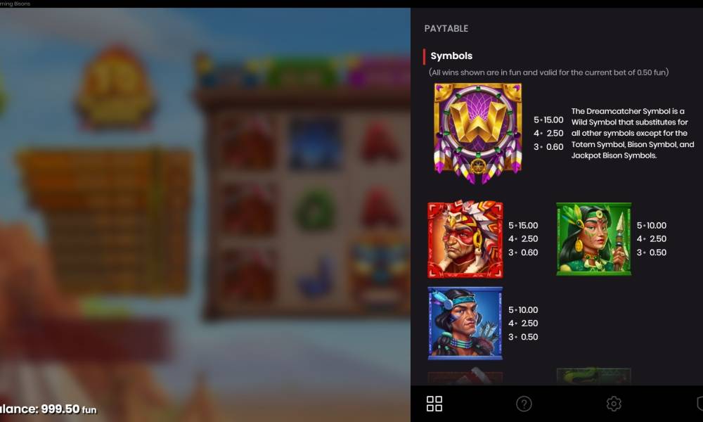 В игре реализованы фриспины с возможностью получения дополнительных попыток по мере накопления спецсимволов. При этом игровое поле расширяется вверх, открывая новые направления для создания выигрышных комбинаций. В обычном режиме пользователь может получить моментальный выигрыш за одновременно выпавшие знаки бизона, вплоть до х500 от ставки. Примечательно, что при средней волатильности максимальный выигрыш составляет х 5602. Не стоит забывать и функцию Push-Up, за дополнительные деньги увеличивающую высоту барабанов в стандартном игровом режиме. Я считаю, что перед нами довольно яркий, увлекательный и азартный онлайн-слот.