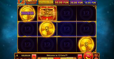 Виду стандартам онлайн слота и его простоте были прописаны правила игрового процесса в слот 12 Coins, предлагаю ознакомиться. В игре отсутствуют классические линии выплат, так как основное внимание сосредоточено на бонусных символах и активации бонусной игры. Игровое поле имеет сетку 4x3, а размер ставки варьируется от 0.2 монеты до 10000 монет за один оборот барабанов.