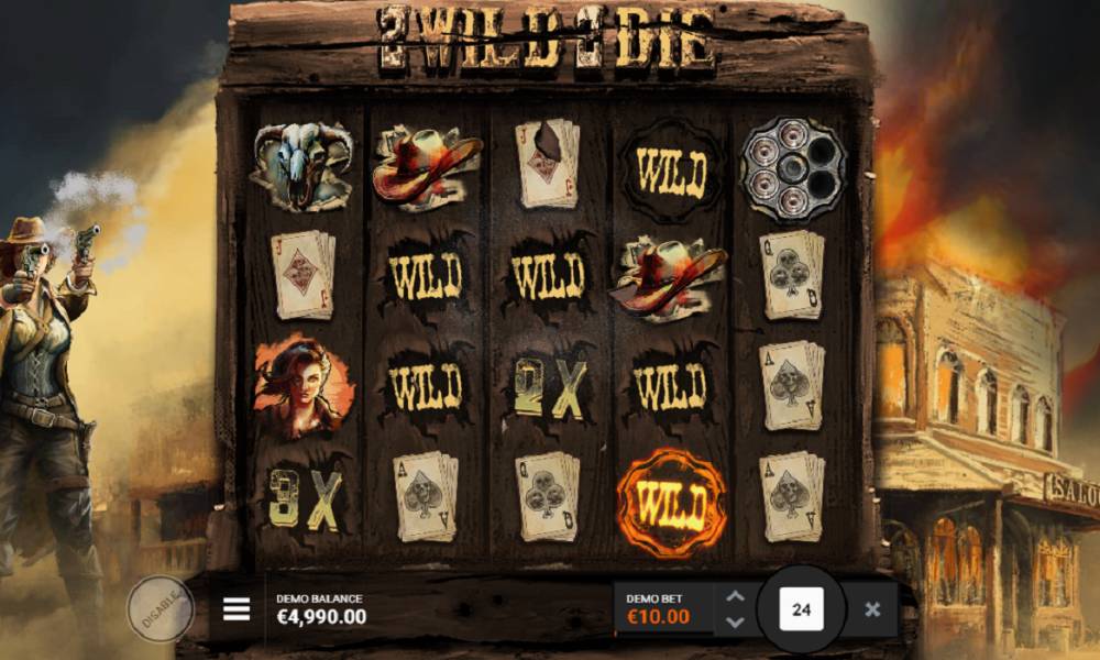 Игра 2 Wild 2 Die ведется на пяти барабанах с четырьмя рядами и 15 фиксированными линиями выплат. Символы делятся на низкооплачиваемые (карты от валета до туза) и высокооплачиваемые (череп, шляпа, пистолет и два персонажа).