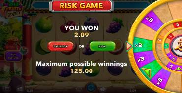 Risk Game. Если гемблер выиграл в простом вращении или в пакете фриспинов, он может увеличить выигрыш в риск-раунде. Кнопка для перехода появляется справа от кнопки ручного запуска. Если не хочется рисковать — нужно продолжить вращения. В риск-раунде есть колесо фортуны. На нем есть ячейки с 4 видами символов: пустые (проигрыш), респин, множитель и переход на уровень с более крупными множителями. Множители на КФ от х2 до х5 включительно. В раунде можно выиграть не более чем х500 от ставки. Количество попыток не ограничено, гемблер может вращать колесо, пока не поймает пустую ячейку, или пока сам решит забрать накопленную сумму.