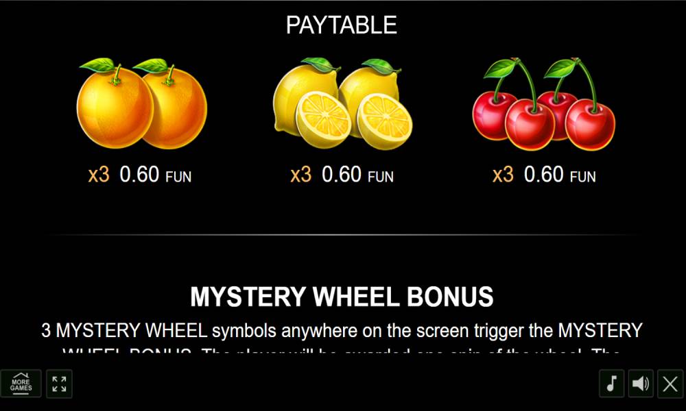 Mystery Wheel Bonus. Когда на барабанах выпадает 3 символа Mystery Wheel, запускается эта функция. Появляется колесо удачи, на котором 8 секторов. Четыре содержат денежную выплату от х30 до х100 от ставки. На остальных размещены фриспины в разном количестве. Дается только одно вращение, после чего приз сразу зачисляется на счет или переходит в раунд бесплатных вращений.