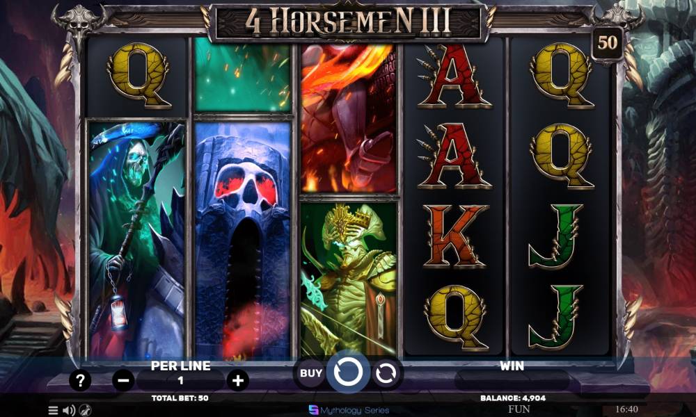 Слот 4 Horsemen III представляемый провайдером Spinomenal посвящен библейскому апокалипсису. Четыре всадника отправились в этот мир, чтобы положить конец его существованию. Великолепное музыкальное и графическое оформление игрового автомата в сочетании с подобным сеттингом производят неизгладимое впечатление.