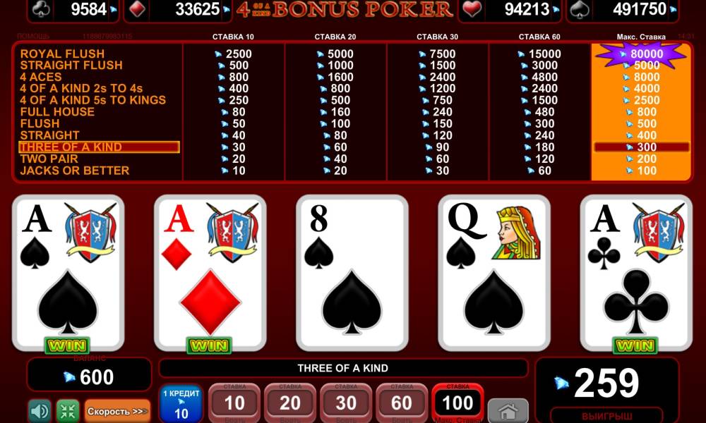 Проверенные онлайн казино с 4 of a Kind Bonus Poker