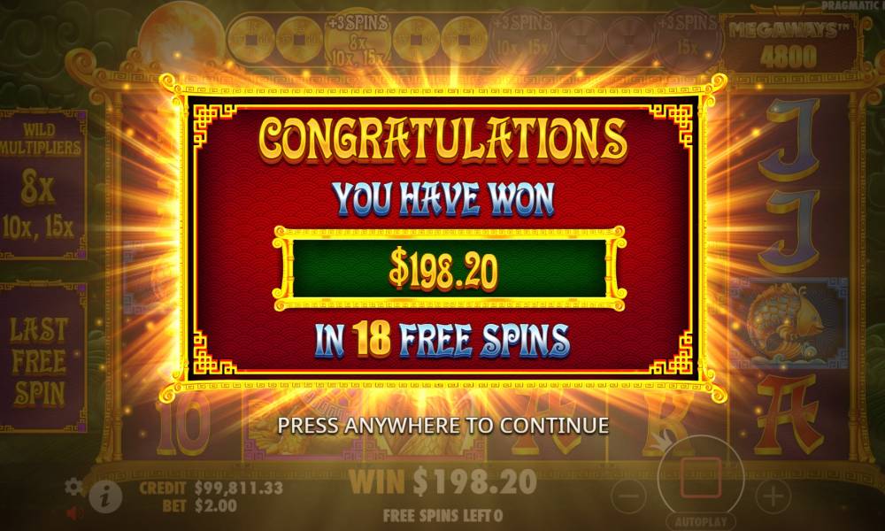 Азиатский сеттинг всегда вызывал у пользователей приятные ощущения. К качеству оформления и звуку придраться попросту негде. Несмотря на большое количество доступных механик, они не мешают друг другу, а прекрасно сочетаются. В слоте присутствуют Multipliers, фриспины, дополнительные ставки и многое другое. Заняться есть чем, скучно уж точно не будет. Максимальный выигрыш может достигать х8000 от ставки, что очень немало. Я считаю, что игра точно достойна внимания и способна заинтересовать многих. Не обошлось и без ложки дегтя — высокая волатильность снижает шансы игрока, а ощущается она соответствующим образом. Пробовать или нет? Выбор за вами!