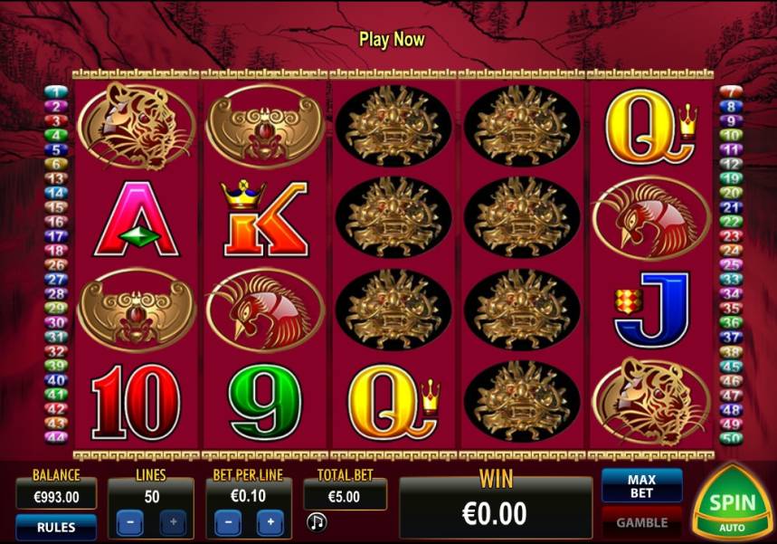 Слот 50 драконов - стандартный 5-ти барабанный автомат. Дизайн отработан со вкусом, без излишеств, в темном красном китайском стиле. Звуковое сопровождение в стиле автомата в живом казино - ничего лишнего, только звуки игры и игровых ситуаций. Играл на слоте в казино videoslots.com, выше всяких похвал - игра грузится за несколько секунд, играет все без тормозов. Если даже у вас не быстрое соединение, вы все равно сможете поиграть.
