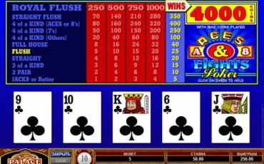 В 50 Line Face the Ace оплачиваются стандартные покерные комбинации от пары валетов до роял флеша. Особенность модели заключается в том, что по разным коэффициентам рассчитывается выигрыши по каре двоек-десяток, каре валетов-королей и каре тузов.