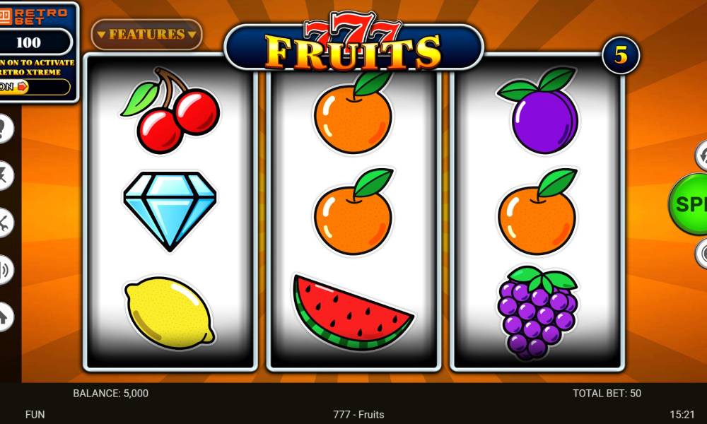 Игровое поле 777 – Fruits slot представлено тремя барабанами, в каждом из которых по три ячейки. Классическая структура уходит корнями к первым механическим слотам, известным как "однорукие бандиты", и остается популярной до сих пор. В процессе вращения барабанов задействованы семь стандартных символов, и один со специальным функционалом. Включение Retro Bet трансформирует обычные 777 в улучшенные, приносящие намного больший выигрыш. Фриспины в этом автомате не предусмотрены, что, на мой взгляд, немного снижает его привлекательность. Размер ставки можно регулировать от 0.05 до 50 евро. Простые и понятные правила отлично дополняют ретро-стиль слота, делая его удобным даже для новичков в мире азартных игр.