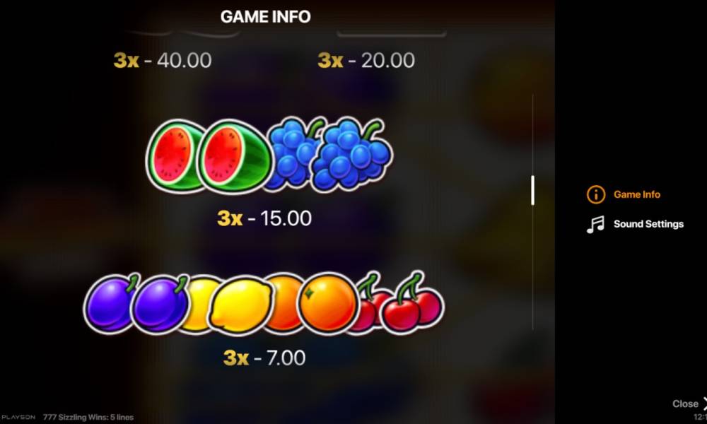 Онлайн слот 777 Sizzling Wins: 5 lines имеет неплохую графику. Приятная анимация выигрышей, красочный дизайн символов — все это несет определенную нагрузку на слабые устройства. С целью улучшения оптимизации, компания Playson сводит к минимуму интерфейс игры, при этом сохраняя его функционал.