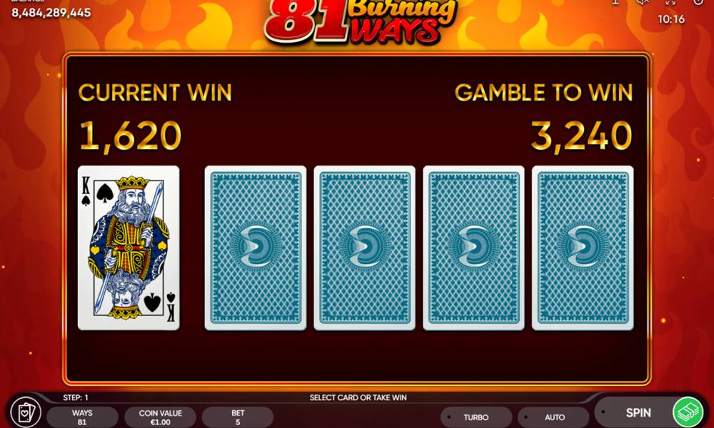 Известный разработчик Endorphina порадовал любителей классических фруктовых слотов новым выпуском огненной игры под названием 81 Burning Ways. Игроки получили еще один способ превосходно отдохнуть и развлечься, наблюдая за вращающимися 4 барабанами, складывающимися комбинациями символов и подсчитывая Wild, которые превращаются в множители и существенно увеличивают сумму выигрыша. Сторонникам рискованных действий предлагается традиционная риск-игра с возможностью удвоить полученный приз.