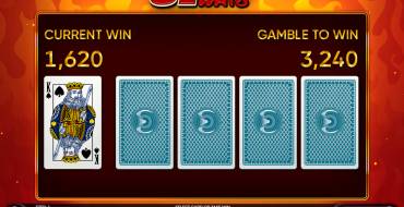 Игра на риск позволяет удвоить выигрыш. Для этого необходимо открыть 1 карту из 4 предложенных, при этом желательно, чтобы она была больше карты дилера. Если она меньше, приз аннулируется. Если карта угадана верно, игрок может продолжать свои рискованные опыты не более 10 раз.