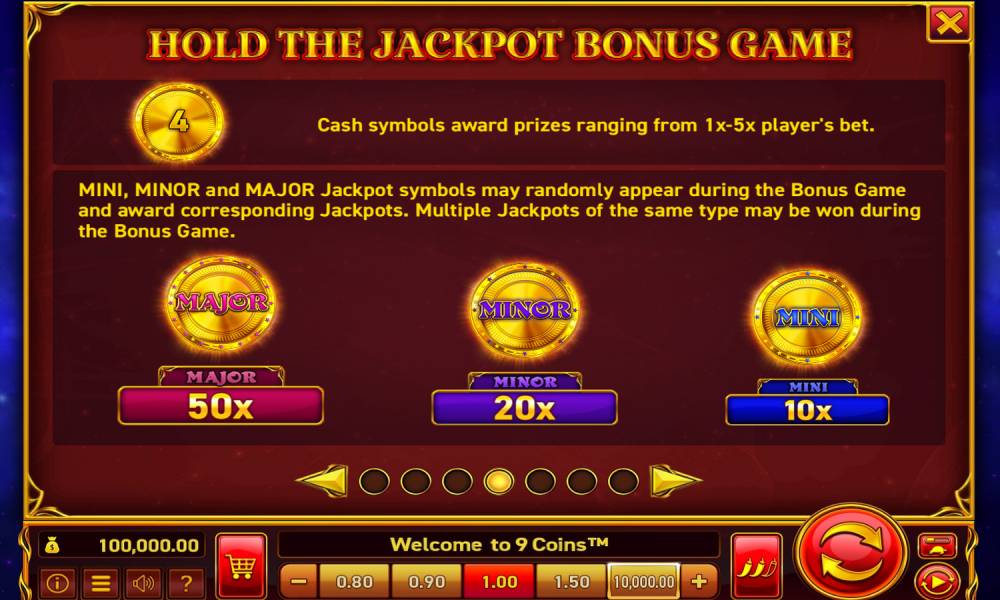 Максимальная ставка в игре 9 Coins — 10000 монет.