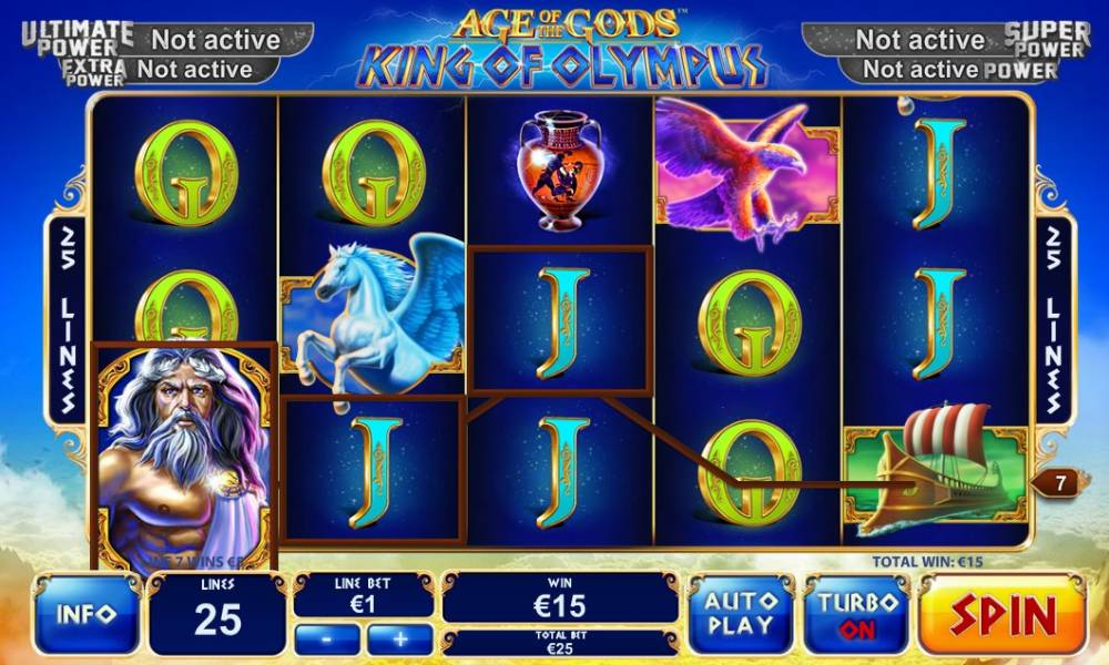 Автомат Age of the Gods: King of Olympus - стандартная игра с 25 линиями.