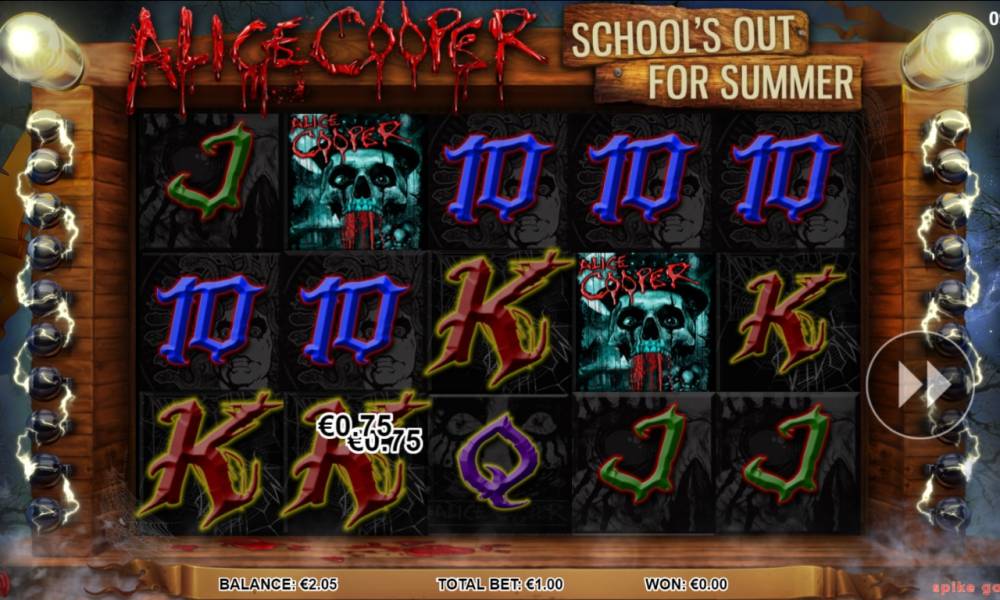 Не каждый любитель рок-музыки вспомнит, кто такой Винсент Деймон Фурнье, но любой меломан понимающе закивает головой, услышав об Элисе Купере (Alice Cooper). Легендарный исполнитель, выступающий в жанре шок-рока, за долгую карьеру записал несколько мировых хитов. Студия Spike Games (Leander Games) отдала предпочтение знаменитой композиции School’s Out, посвятив ей игровой автомат, о котором пойдет речь в обзоре Casinoz.