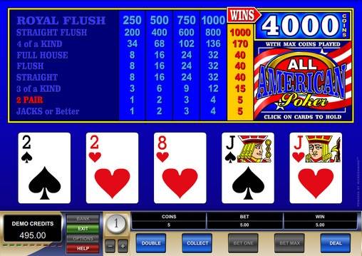 В видео-покере All American от Microgaming нет бонусных выплат