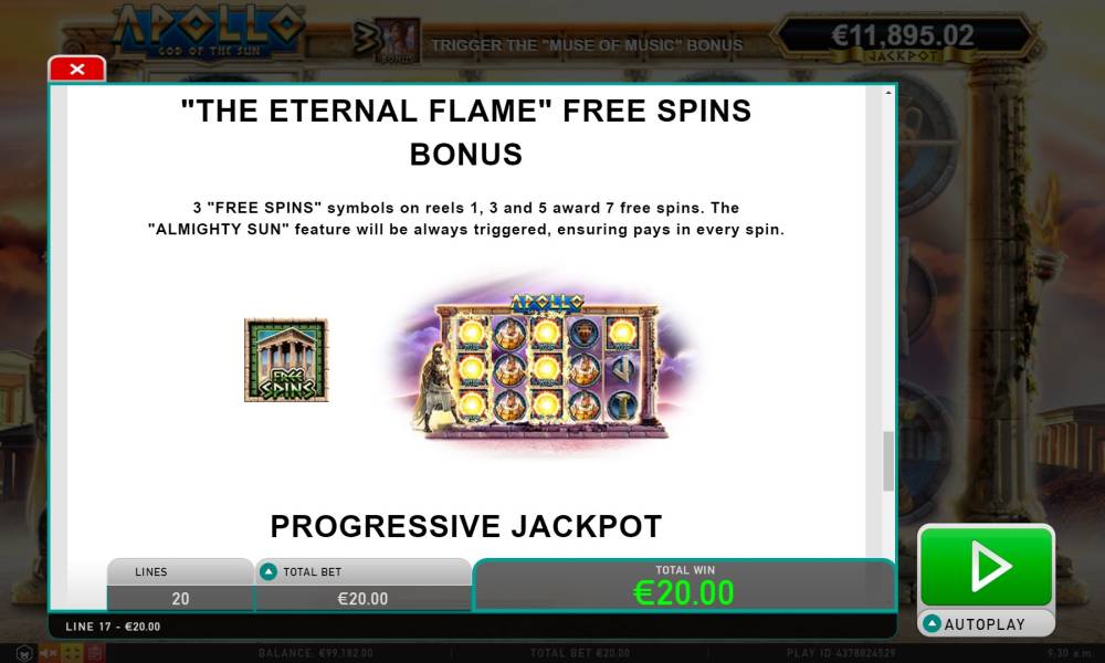 Almighty Sun – В любом обычном или бесплатном спине Аполлон может заполнить один или несколько столбцов вертикальными полосами джокеров, которые будут участвовать в составлении комбинаций.