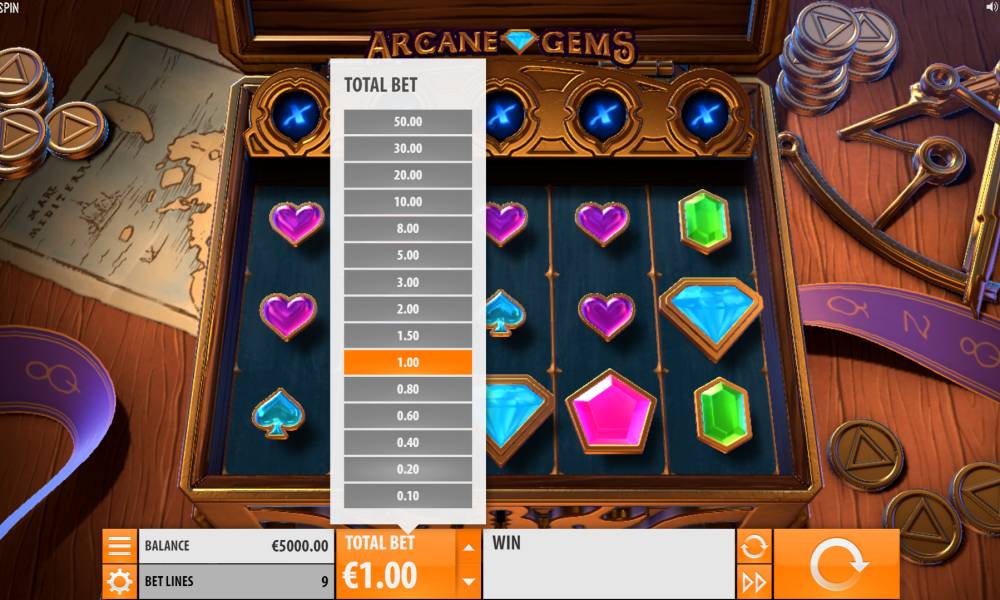 Игровое поле у слота Arcane Gems от провайдера Quickspin состоит из 5 барабанов по 3 символа. Выплаты производятся по 9 игровым линиям.