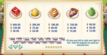 Базовое устройство игрового автомата «Угощение от пекаря» имеет пять барабанов и пятнадцать фиксированных линий. Иконки выстраиваются на экране в три ряда.