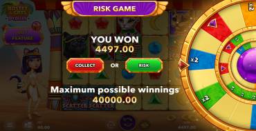 Risk Game. Это колесо фортуны, в котором можно увеличить выигрыш. Его можно запустить после получения любой выплаты — после простого вращения или после завершения пакета фриспинов. На кону будет стоять выигранная сумма. На колесе есть 3 кольца. Игра начинается с первого, если гемблер поймает ячейку с символом стрелки — вращения перейдут на следующее кольцо. Между собой кольца отличаются размерами выплат: на первом есть только х2 и х3, на втором — х2, х3, х4, на третьем — х2, х3, х4, х5. Если при вращении выпадет пустая ячейка, то раунд заканчивается проигрышем. Гемблер может повторить вращение, если в предыдущем выиграл множитель. Увеличить выигрыш можно на сумму до х1000 от размера ставки.
