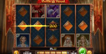 В слоте Battle Royal пять барабанов, двадцать постоянно используемых линий и пятнадцать ячеек для символов на главном экране.