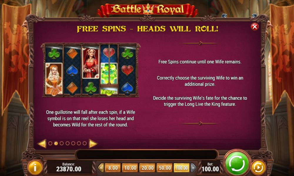 Этому колоритному историческому персонажу компания Play’n GO посвятила веселый игровой автомат Battle Royal. Генрих Шестой предстает в забавном образе, и ему предстоит постоянно убегать от призраков покойных жен. Так что скучно в процессе игры вам точно не будет.