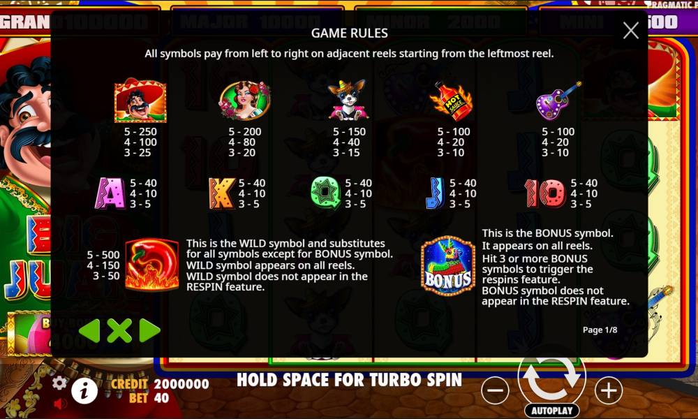 Игровой автомат Big Juan получился красочным и увлекательным. Хочется отметить приятную возможность покупать респины, которая часто оправдывает затраты. Слот выдает джекпоты, а потому, по мнению экспертов Casinoz, является хорошим местом для заработка денег и поднятия настроения.