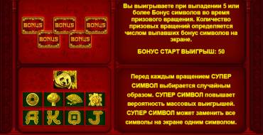 Игровой автомат Big Panda от компании Amatic Industries имеет поле 5х4. В слоте 50 игровых линий, причем число активных вы можете изменить.