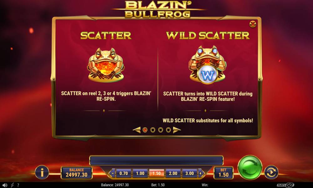 Игровой аппарат Blazin Bullfrog от провайдера Play'n Go имеет стандартное игровое поле 5х3. Выплаты в нем производятся по 10 фиксированным линиям.
