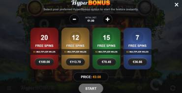 HyperBonus. Здесь продаются 4 пакета фриспинов: с X2 Wild по 7 или 12 ФС, и с Х3 Wild по 15 и 20 ФС.