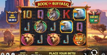 Интерфейс автомата Book of Buffalo достаточно прост. Игровое поле расположено по центру экрана. Рядом находятся кнопки Buy Bonus и Side Bet. Управление осуществляется клавишами: