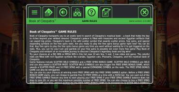 Игровой автомат Book of Cleopatra от провайдера Spinomenal выполнен на классическую книжную тематику. Если вам повезет, то здесь вы сможете выиграть крупные призы, вплоть до 2700 ставок.