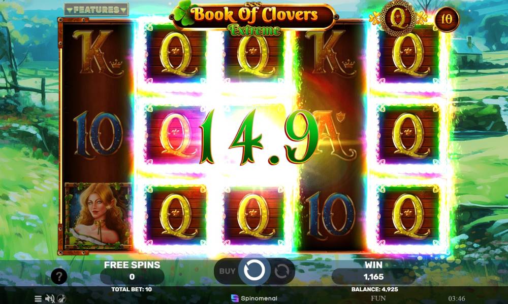 В правилах Book Of Clovers – Extreme найдутся оригинальные нововведения, так как слот является частью популярной серии и не может повторять своих предшественников полностью. Игровое поле состоит из 5 барабанов высотой в 3 ячейки. Задействовано 10 фиксированных линий. Комбинации в обычном игровом режиме составляются слева направо, от 3 одинаковых знаков подряд. Во время фриспинов действуют бонусы с Special Expanding Symbol, позволяющие получать выигрыши со случайно определяемого знака вне зависимости от его расположения. При этом младших знаков нужно 3, а старших 2.
