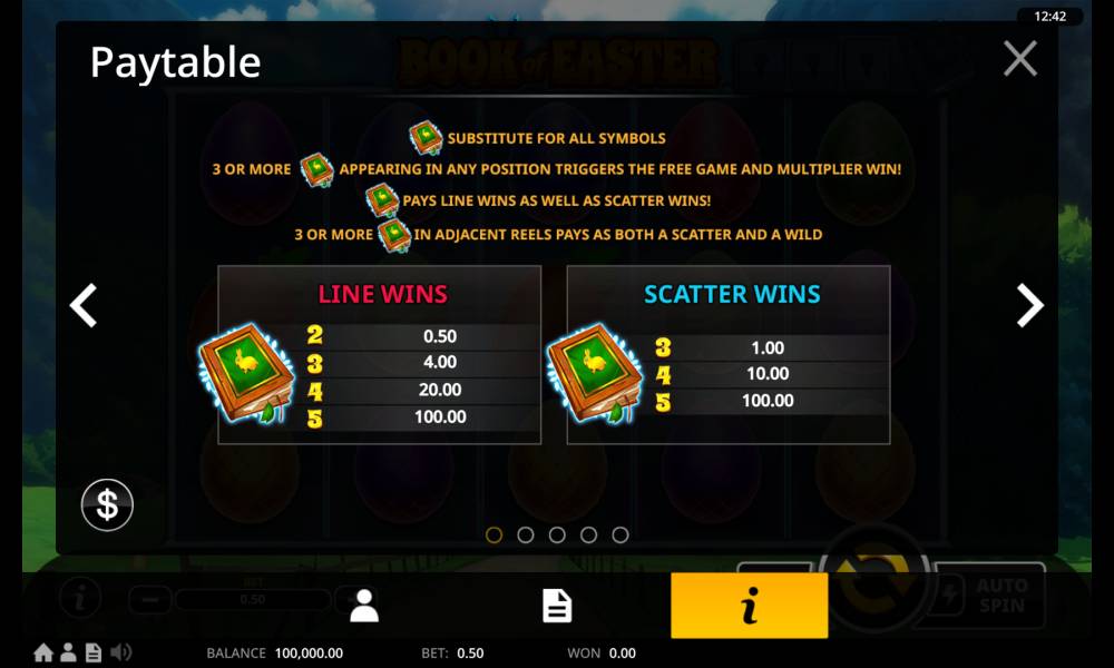 В мобильной версии слота Book of Easter от провайдера Swintt вы также можете использовать все возможности слота.