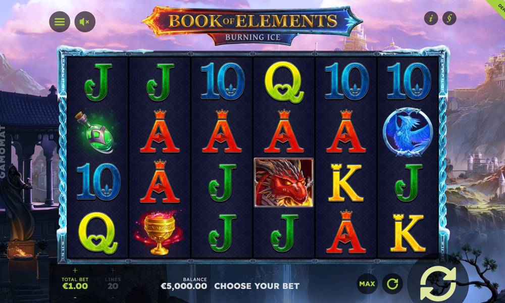 Игровое поле онлайн слота Book of Elements содержит 24 ячейки — 6х4. Призовые комбинации составляются слева направо с первой катушки. Три дорогих символа дают выплаты от 2 штук, а два — от трех. Также от 3 до 6 картинок на линии приносят награды 5 младших знаков. Изображение магической книги — это специальный символ, который дает самостоятельные выплаты и активирует дополнительные функции. В слоте предусмотрено 20 фиксированных линий. Ставку можно делать от 0.2 до 100 евро. Есть две риск-игры, активирующиеся по желанию пользователя после удачного спина, и фриспины.