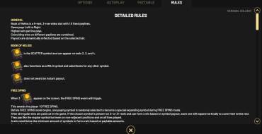 Игровая сетка слота имеет формат 5х3. На ней появляются 9 разнообразных символов: 4 вида старших и 5 — младших. Знаки из первой категории оплачиваются от 2 штук на линии, а из второй — от 3. Призовые комбинации составляются от левого барабана к правому. Предусмотрено 10 фиксированных линий для выплат. Диапазон ставок на спин 0.2-20 евро, что подразумевает не очень высокие затраты, но и такие же маленькие выигрыши. Но это не означает, что в слоте нельзя сорвать крупный куш. Максимальный выигрыш составляет х20168 от ставки. Провайдер добавил фриспины, покупной бонус и множители, чтобы игра была интереснее и разнообразнее.