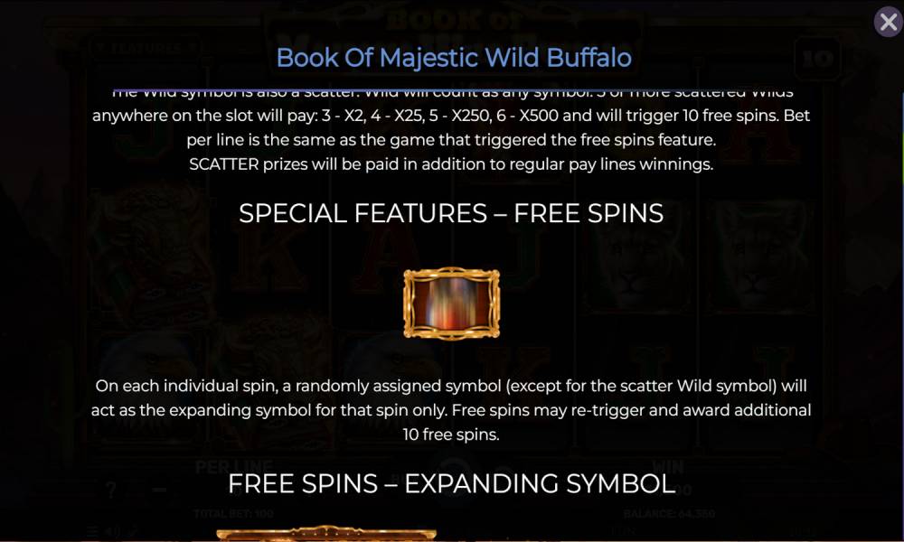 Летом 2023 года Spinomenal пополнили количество слотов на тему Дикого Запада. В Book of Majestic Wild Buffalo гемблеру встретятся самые известные представители фауны американских прерий: буйвол, гриззли, лев и орел. Слот получил необычный многофункциональный Wild-символ с выплатами, фриспины, возможность расширения знаков. Если сильно повезет, гемблер получит х10000 от сделанной ставки. Этому помогут и бонусные функции, и неплохой РТП чуть выше среднего.