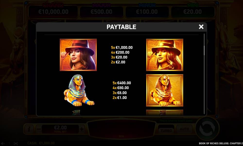 Изучив особенности слота и его функционал, вы сможете начать платить реальными деньгами и получать настоящие выигрыши. Игровой автомат Book of Riches Deluxe 2 есть в разных онлайн-казино в списке ниже. Все они имеют лицензии и гарантируют честную игру. Перед игрой загляните в таблицу выплат, где много информации о выигрыше комбинации.