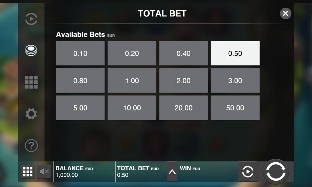 Перед началом игрового раунда необходимо сделать ставку, минимальный размер которой составляет 20 центов, а максимальный бет здесь равен 100 долларам за одно вращение.