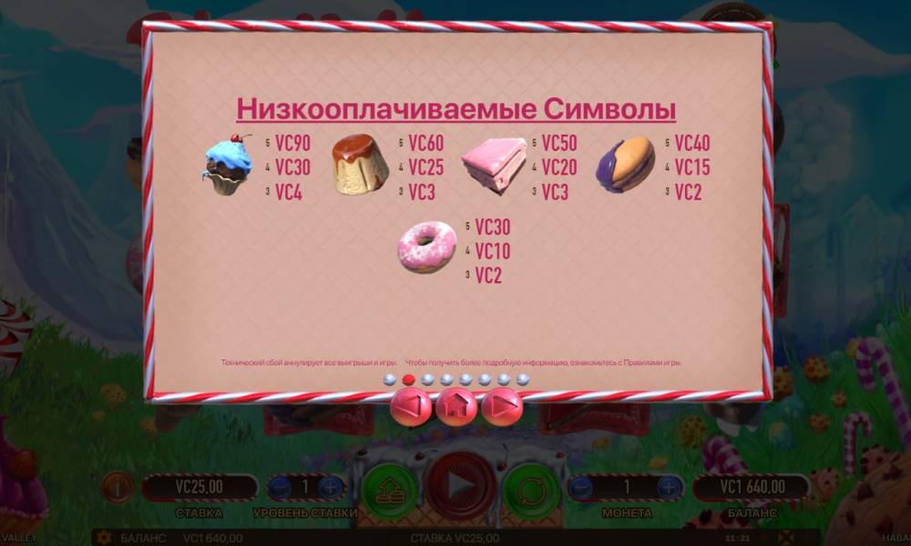 Cake Valley — слот с непритязательной графикой, но крайне увлекательной механикой. Любителям сладкого возможно и понравится его тематика, зато определенно многие игроки оценят интересный геймплей.